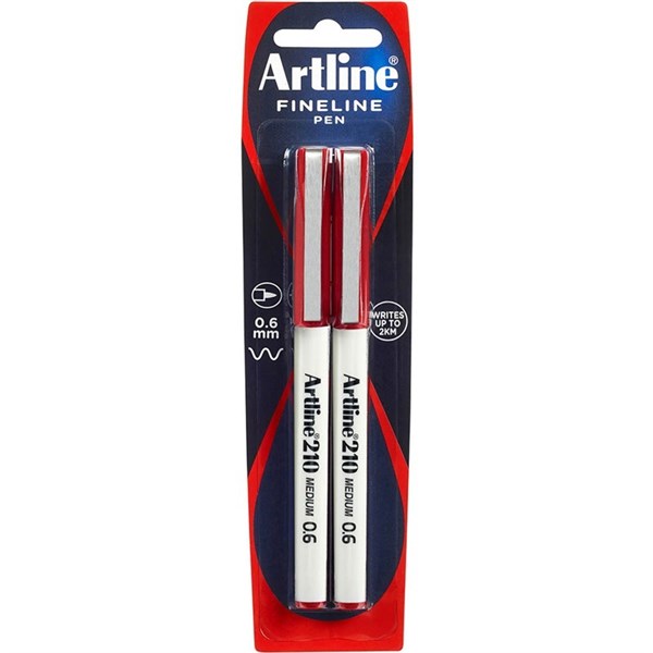 ARTLINE 210 FINELINER PEN 0.6MM RED PACK 2