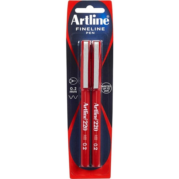 ARTLINE 220 FINELINER PEN 0.2MM RED PACK 2