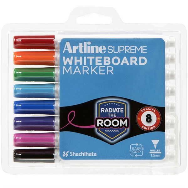 ARTLINE SUPREME ANTIMICROBIAL WHITEBOARD MARKER BULLET 1.5MM ASSORTED PACK 8