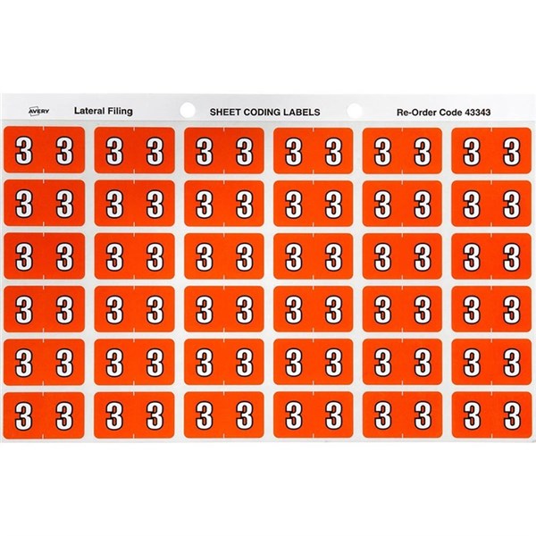 AVERY 43343 LATERAL FILE LABEL SIDE TAB YEAR CODE 3 25 X 38MM DARK ORANGE PACK 180