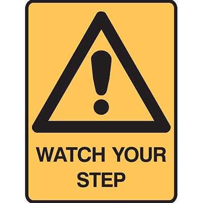 BRADY WARNING SIGN WATCH YOUR STEP 300 X 400MM POLYPROPYLENE