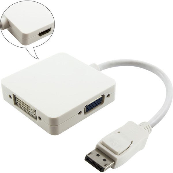 This universal DisplayPort to VGA + DVI + HDMI adapter ensures you will always have the right connection - Connect an HDMI, DVI or VGA monitor, TV or projector to a computer equipped with a DisplayPort connector