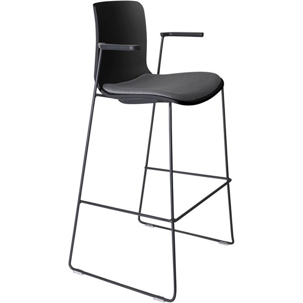 DAL ACTI BAR STOOL SLED BASE HIGH 760MM ARMS BLACK ARM-PADS AND BLACK POWDERCOAT FRAME BLACK POLYPROP SHELL