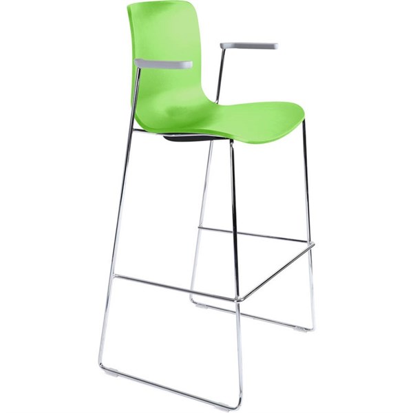 DAL ACTI BAR STOOL SLED BASE HIGH 760MM ARMS LIGHT GREY ARM-PADS AND CHROME FRAME GREEN POLYPROP SHELL