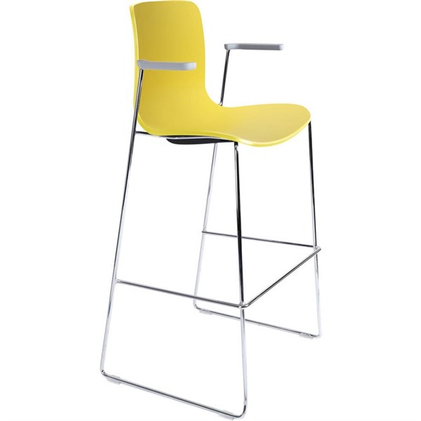 DAL ACTI BAR STOOL SLED BASE HIGH 760MM ARMS LIGHT GREY ARM-PADS AND CHROME FRAME YELLOW POLYPROP SHELL