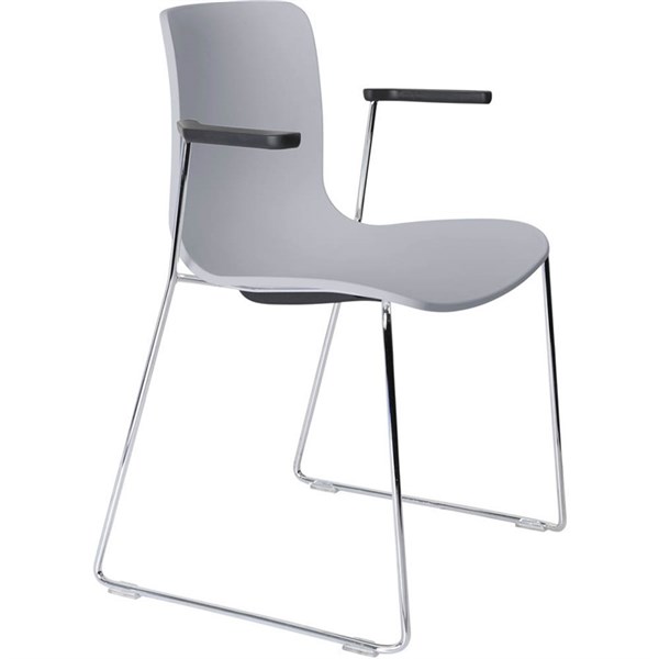 DAL ACTI CHAIR SLED BASE ARMS BLACK ARM-PADS AND CHROME FRAME LIGHT GREY POLYPROP SHELL