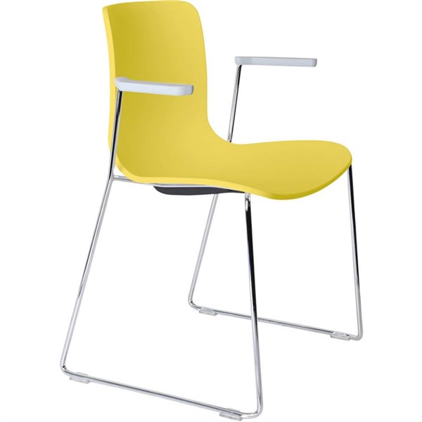 DAL ACTI CHAIR SLED BASE ARMS LIGHT GREY ARM-PADS AND CHROME FRAME YELLOW POLYPROP SHELL