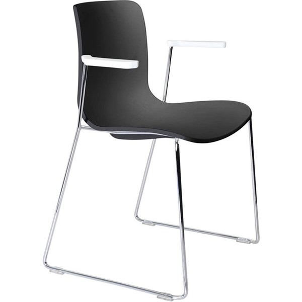DAL ACTI CHAIR SLED BASE ARMS WHITE ARM-PADS AND CHROME FRAME BLACK POLYPROP SHELL