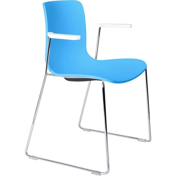 DAL ACTI CHAIR SLED BASE ARMS WHITE ARM-PADS AND CHROME FRAME OCEAN BLUE POLYPROP SHELL