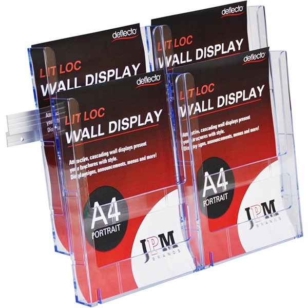 DEFLECTO LIT-LOC BROCHURE HOLDER WALL DISPLAY 2-TIER 4 X A4 CLEAR