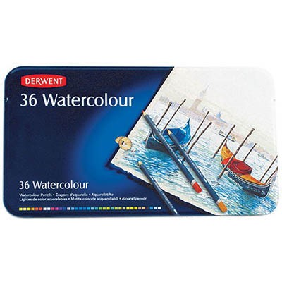 DERWENT WATERCOLOUR PENCILS ASSORTED TIN 36