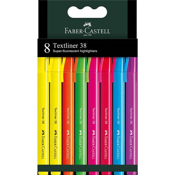 FABER-CASTELL TEXTLINER 38 SUPER-FLUORESCENT HIGHLIGHTERS ASSORTED PACK 8