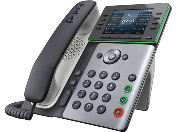 • The phone features HD voice quality powered by Poly audio technology for clear, natural conversations