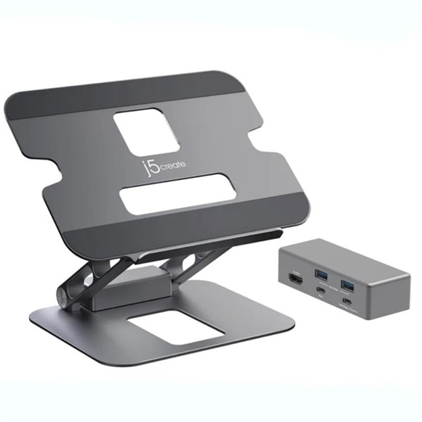 The J5create docking stand is made of durable aluminum and can support a variety of items in addition to a laptop including tablets, books, etc. Its foldable design allows for easy storage or transport, while the viewing angles and heights can be adjusted to fit your needs and optimize your viewing experience - The integrated usb-c mini dock features a 4K HDMI output, two USB 5gbps, type a ports, as well as a usb-c port that supports 5gbps data transfer rate and up to 100w pass through