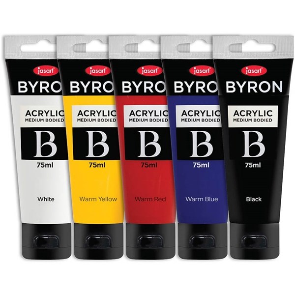 JASART BYRON ACRYLIC PAINT 75ML PRIMARY WARM ASSORTED PACK 5