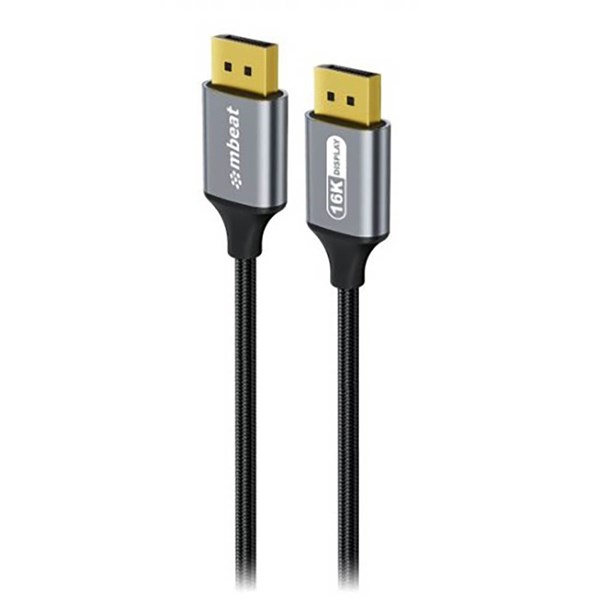 Experience next-gen clarity with the Mbeat Tough Link 16K DisplayPort 2.1 Cable. Supports up to 16Kat30Hz, 8Kat240Hz, and 4Kat240Hz with 40Gbps bandwidth - VESA certified for ultra-high resolution, FreeSync/G-Sync/VRR support, and eARC audio. Compatible with RTX, XT GPUs, high-end monitors, and more
