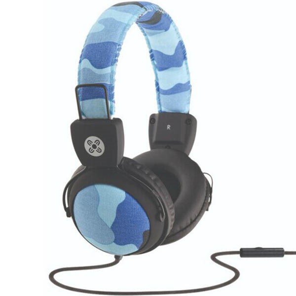 MOKI CAMO HEADPHONES INLINE MIC BLUE