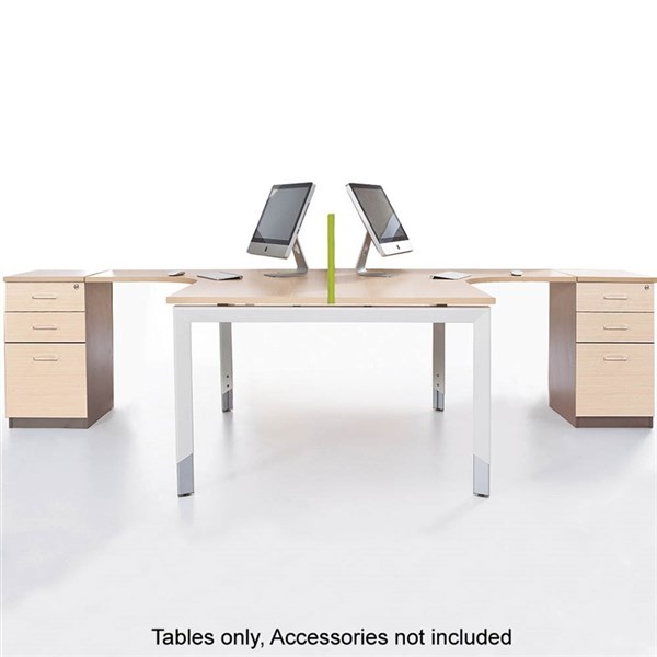 OBLIQUE HEIGHT ADJUSTABLE 2 PERSON CORNER WORKSTATION FIXED PEDESTAL 3000/1500 X 600/500 X 720MM SNOW MAPLE