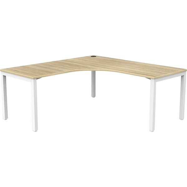 OLG AXIS SINGLE SIDED 90 DEGREE WORKSTATION LEFT HAND RETURN 1800 X 1800 X 750MM WHITE FRAME NEW OAK TOP