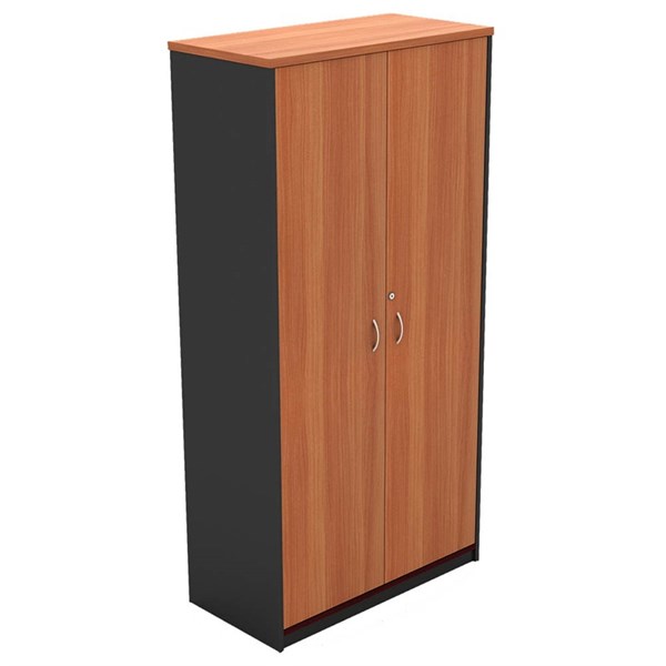 OM FULL DOOR STATIONERY CUPBOARD 900 X 450 X 1800MM CHERRY/CHARCOAL