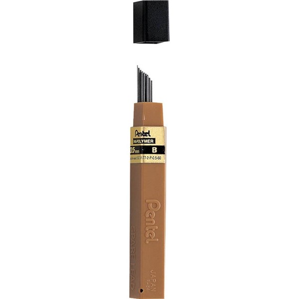 PENTEL HI-POLYMER MECHANICAL PENCIL LEAD REFILLS B 0.5MM TUBE 12