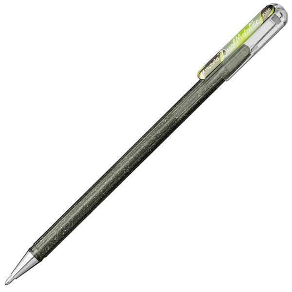 PENTEL K110 HYBRID DUAL METALLIC GEL INK PEN 1.0MM SILVER / METALLIC COPPER AND GREEN BOX 12