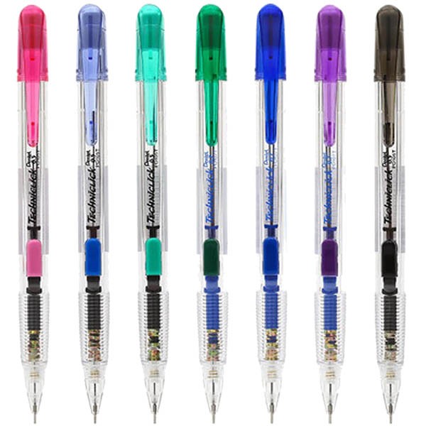 PENTEL PD107 TECHNICLICK MECHANICAL PENCIL 0.7MM ASSORTED BOX 12