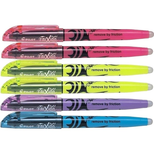 The erasable Pilot Frixion Light Soft is a unique highlighter that contains thermo sensitive gel ink in soft colours - The heat generated by friction when rubbing the paper with the special tip turns the ink invisible