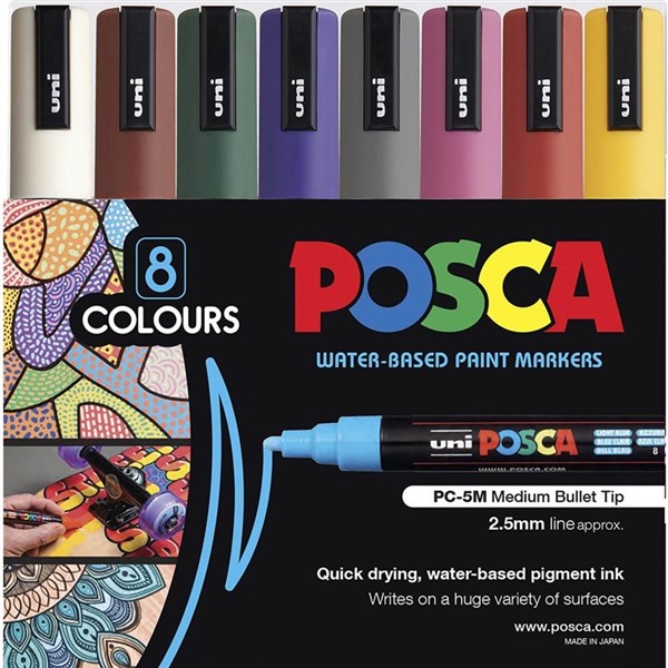 POSCA PC-5M's medium bullet tip is ideal for artists and creative professionals such as architects, creative crafts hobbyists for scrapbooking, for interior design amateurs, surfers and skaters, and of course for Beginners - POSCA PC-5M medium bullet tip is the multi-purpose member of the POSCA's range
