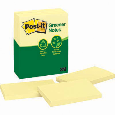 POST-IT 655-RP 100% RECYCLED NOTES 76 X 127MM YELLOW PACK 12