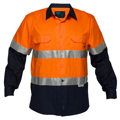 High visibility two tone lightweight long sleeve shirt with tape - 100% Cotton fabric for added comfort and breathability