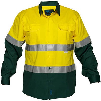 High visibility two tone lightweight long sleeve shirt with tape - 100% Cotton fabric for added comfort and breathability