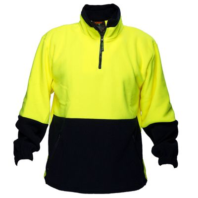PRIME MOVER MF115 HI-VIS POLAR FLEECE JUMPER LONG SLEEVE 1/4 ZIP 2-TONE YELLOW NAVY MEDIUM