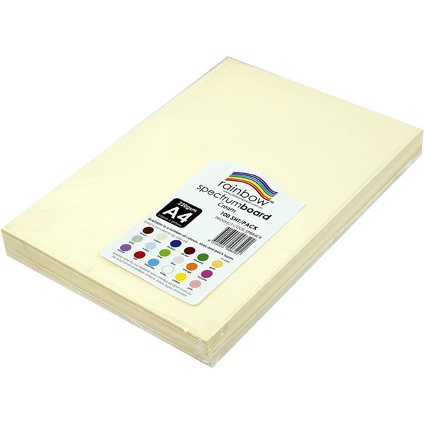 RAINBOW SPECTRUM BOARD 220GSM A4 CREAM PACK 100