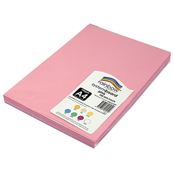 RAINBOW SYSTEM BOARD 150GSM A4 PINK PACK 100