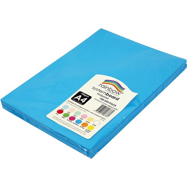 RAINBOW SYSTEM BOARD 150GSM A4 TURQUOISE PACK 100