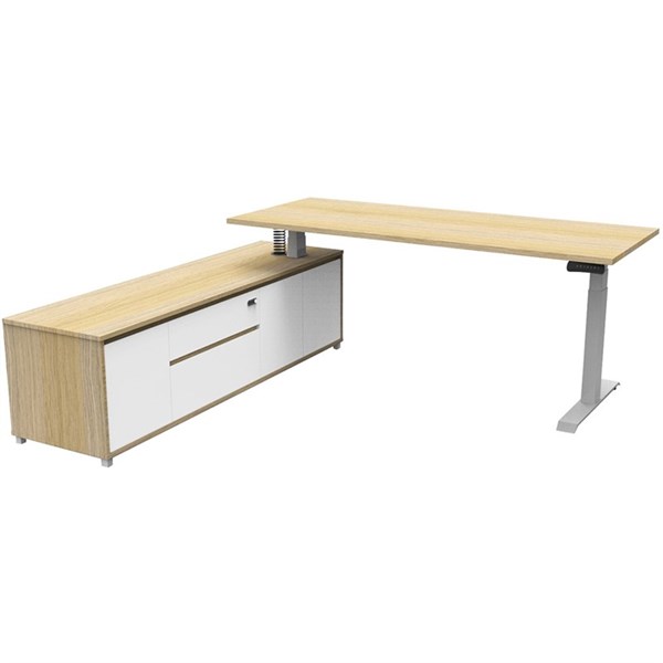 RAPIDLINE BOOST PLUS EXECUTIVE HEIGHT ADJUSTABLE WORKSTATION LHC 1800 X 900MM NATURAL OAK/WHITE