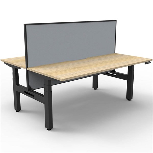 RAPIDLINE BOOST PLUS HEIGHT ADJUSTABLE DOUBLE SIDED WORKSTATION WITH SCREEN 1200 X 750MM NATURAL OAK TOP / BLACK FRAME / GREY SCREEN