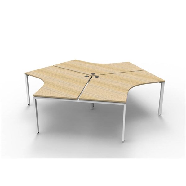 RAPIDLINE DELUXE INFINITY 120 DEGREE WORKSTATION PROFILE LEG 3 PERSON 2866W X 730MM NATURAL OAK TOP AND WHITE P/C FRAME