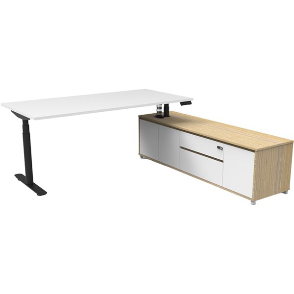 - The integrated side cabinet provides ample storage with drawers and cupboards, enhancing workspace organisation and keeping your essentials within easy reach