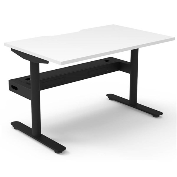 The Halo Static Single Sided Workstation provides a functional and organised workspace - The table top is designed with a 50mm scallop cut-out for efficient cable management, while the fully ducted cable tray ensures cords stay organised