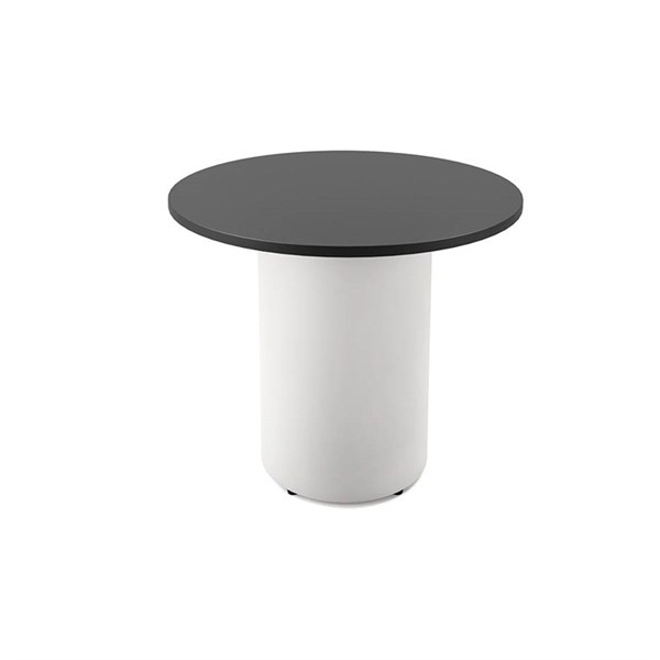 RAPIDLINE ROUND DRUM BASE TABLE 900 X 730MM BLACK TOP AND WHITE P/C FRAME