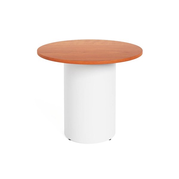 RAPIDLINE ROUND DRUM BASE TABLE 900 X 730MM CHERRY TOP AND WHITE P/C FRAME