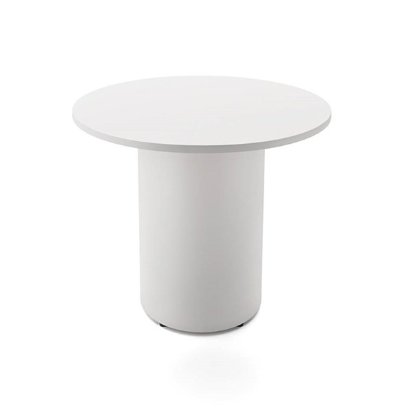 RAPIDLINE ROUND DRUM BASE TABLE 900 X 730MM NATURAL WHITE TOP AND WHITE P/C FRAME