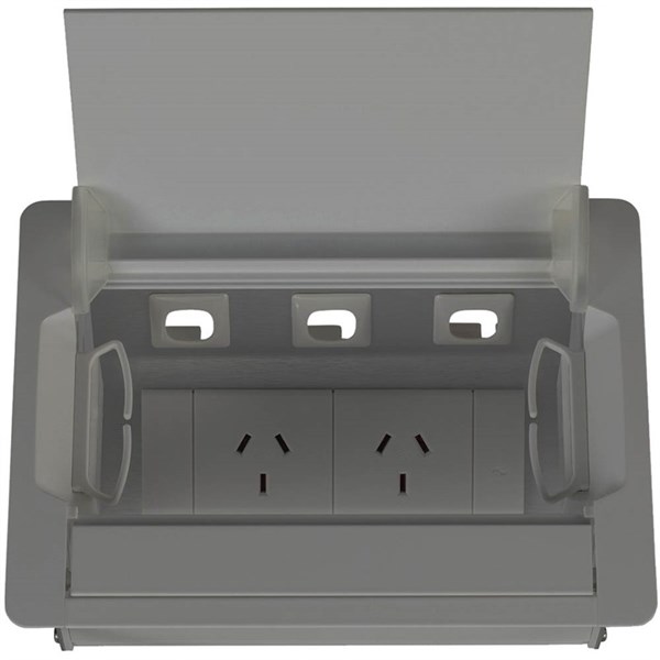 RAPIDLINE TABLE SURFACE MOUNTED SERVICE BOX 2-GPO ANODISED SILVER