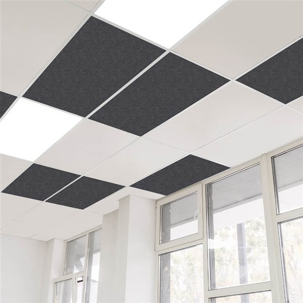 Improve sound control with SANA Drop-In Ceiling Tiles in Shadow - These 12mm acoustic PET panels (60% recycled content) absorb up to 40pct of ambient noise