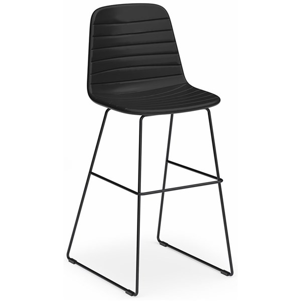 SOFIA BARSTOOL WITH BLACK SLED POWDERCOATED BASE BLACK PU UPHOLSTERY