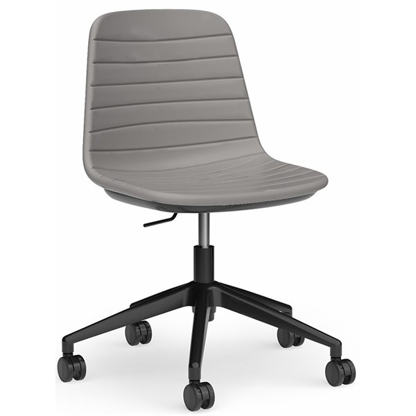 SOFIA CHAIR WITH BLACK GAS LIFT CASTOR BASE LIGHT GREY PU UPHOLSTERY