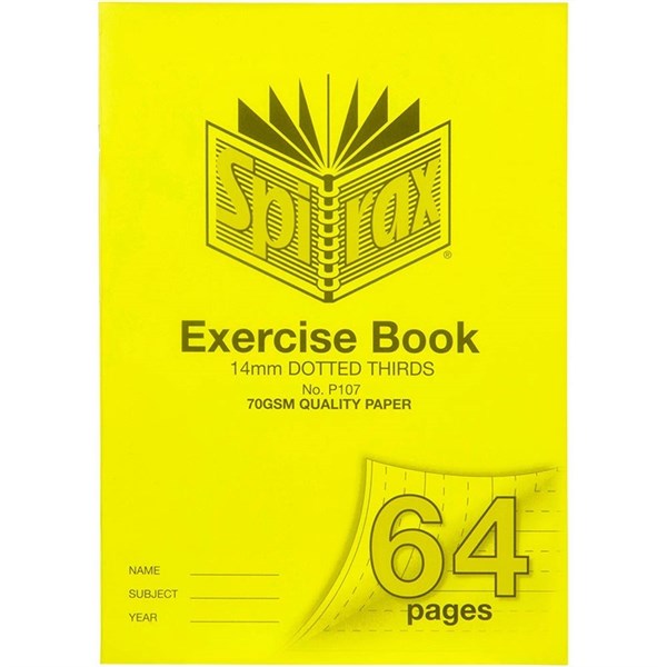 SPIRAX P107 EXERCISE BOOK 14MM DOTTED THIRDS 70GSM 64 PAGE A4 YELLOW
