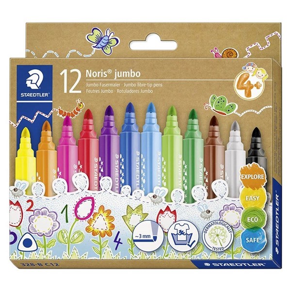 These Staedtler Noris Jumbo Markers have fibre tips that are stable and resistant to pressure, making them ideal for younger users - The jumbo size of the barrels make them comfortable to hold for long periods, while delivering optimum control
